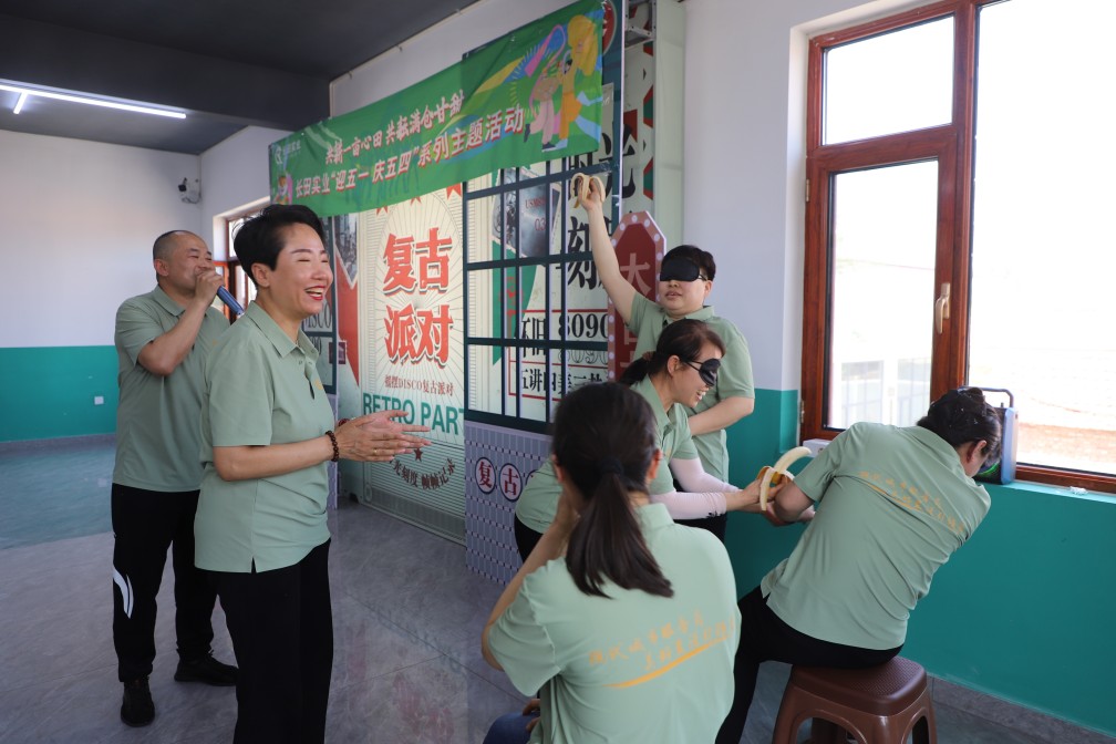餐中設置的游戲環(huán)節(jié)更是激起了大家的參與熱情,笑聲和歡呼聲此起彼伏。“蒙眼吃香蕉”簡直就是歡樂的源泉!參與者兩兩一組,參與者戴上眼罩原地轉(zhuǎn)圈后迷失了方向,雙手小心翼翼地握著香蕉,一會兒往左偏,一會兒往右拐,那手忙腳亂的樣子,真是讓人忍俊不禁,坐著等待的同伴更是“心焦”,恨不得通過聲音指引隊友。有的摸索著找到隊友的嘴巴,有的卻誤打誤撞地碰到了隊友的鼻子,有的甚至直接越過隊友……現(xiàn)場爆發(fā)出一陣陣歡笑聲。最先吃完香蕉的隊員興奮得手舞足蹈,獲勝小組在臺下更是歡呼雀躍。