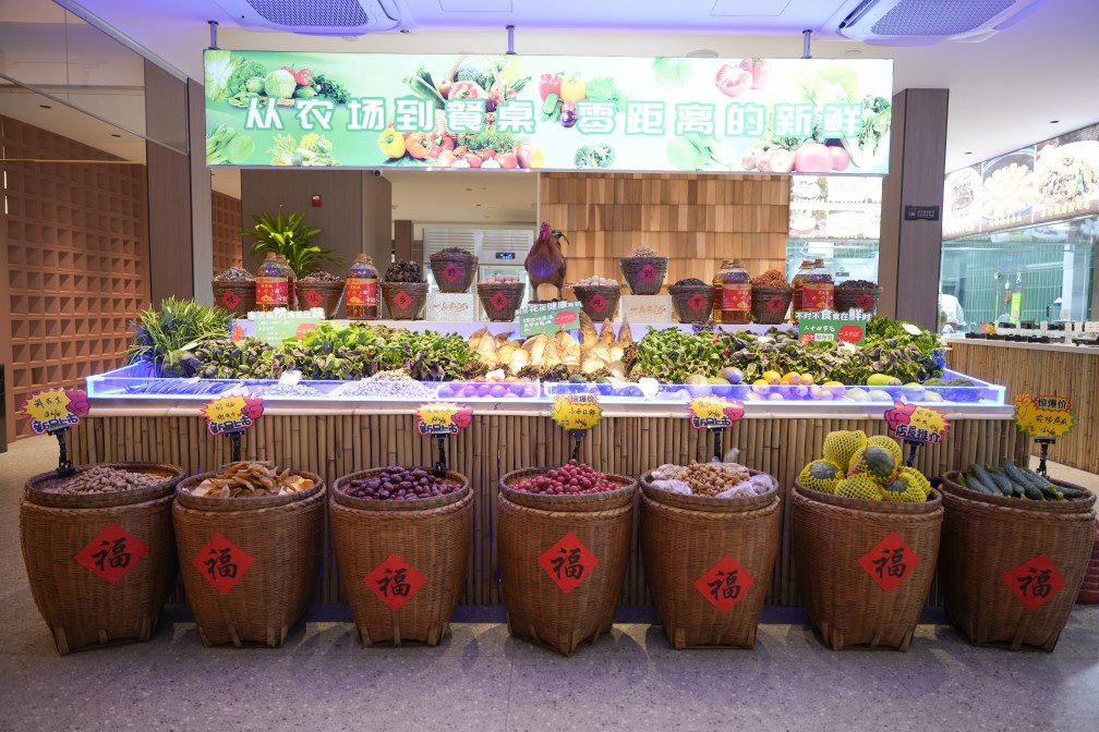 儀式結束后,嘉賓們共同進店參觀指導。城市農(nóng)場餐廳板塊創(chuàng)新打造“黃河文化主題包間群”,以黃河干流途經(jīng)的九大省份及入魯后流經(jīng)的九座城市為命名體系,構建起獨具特色的空間敘事。每個包間通過魯錦、蜀繡、唐卡、剪紙等非遺藝術裝置,立體化呈現(xiàn)沿黃地域的文化基因,讓消費者沉浸式感受“一河串聯(lián)千年文明”的文化魅力。