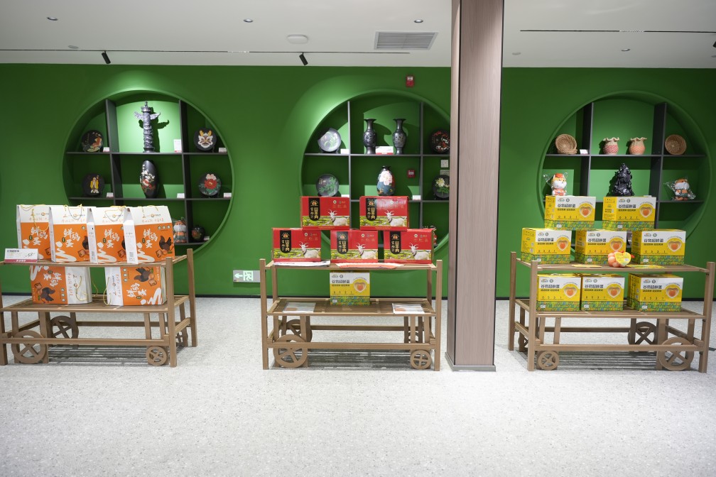 在生態(tài)農(nóng)產(chǎn)品展銷中心,集中展示濟陽本地特色農(nóng)產(chǎn)品,如仁風西瓜、曲堤黃瓜、長田樂享超鮮蛋等。消費者餐后可直接選購同源食材,形成“嘗鮮—認知—消費”閉環(huán)。參與展銷的不止?jié)柕奶厣r(nóng)產(chǎn)品,還有濟陽黑陶、濟陽老粗布等濟北手造產(chǎn)品,黃河文化孕育出的濟陽特色非遺,在這里熠熠生輝。