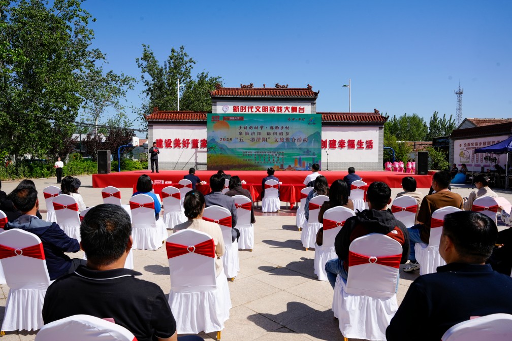 鄧部長在活動(dòng)中發(fā)表致辭。他講到,濟(jì)陽,一座非遺活態(tài)傳承的“文化寶庫”。黃河奔涌千年,孕育了濟(jì)陽獨(dú)特的人文基因。這里有起源于龍山文化的黑陶工藝,泥火交融間淬煉出“黑如漆、亮如鏡”的千年技藝;有列入國家非遺的鼓子秧歌,田間地頭的質(zhì)樸舞步,跳出了黃河兒女的豪邁氣魄;更有鉤繡、柳編等非遺手藝,一針一線、一編一織,凝結(jié)著濟(jì)陽人民的智慧與匠心。他指出,五一正值春末夏初,濟(jì)陽大地瓜果飄香、稻田如畫:在“中國西瓜之鄉(xiāng)”仁風(fēng),采摘“富硒西瓜”,品味清甜;在垛石番茄園,體驗(yàn)“柿”界奇妙,感受豐收喜悅;漫步稻田研學(xué)基地,盡收“稻花香里說豐年”的田園意境……更有非遺手造市集、黃河美食盛宴、民俗文化展演等等,可在沉浸式體驗(yàn)中觸摸黃河文化脈絡(luò),共享“詩與遠(yuǎn)方”。他表示,五一期間,將推出系列惠民政策,讓游客感受濟(jì)陽人的熱情與真誠。